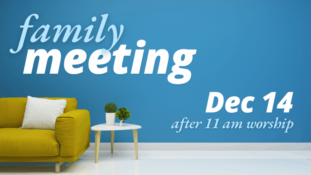 Join us for a Family Meeting in the Activity Room on Sunday, December 14th, immediately following 11 am Worship!
